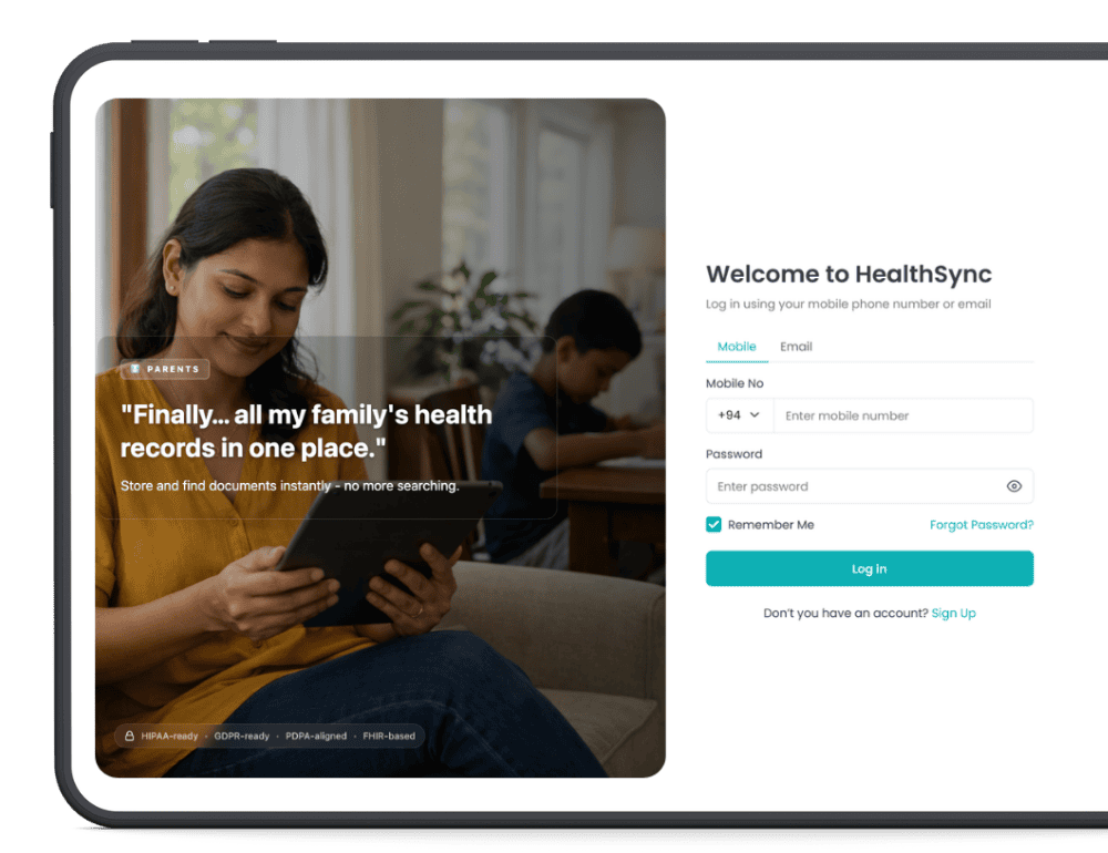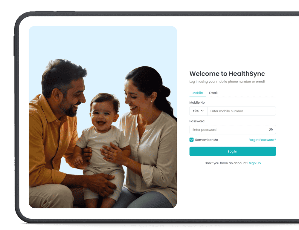 Create your secure HealthSync account with just your NIC/Passport and mobile number.